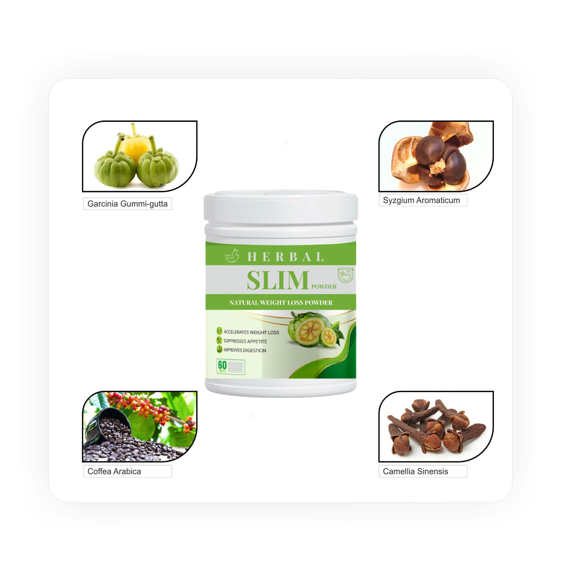 HERBAL SLIM POWDER या पेटंट केलेल्या मिश्रणात दोन घटक आहेत जे तुम्हाला लवकर पतळ होण्यात मदत करण्यासाठी एकत्र काम करतात.